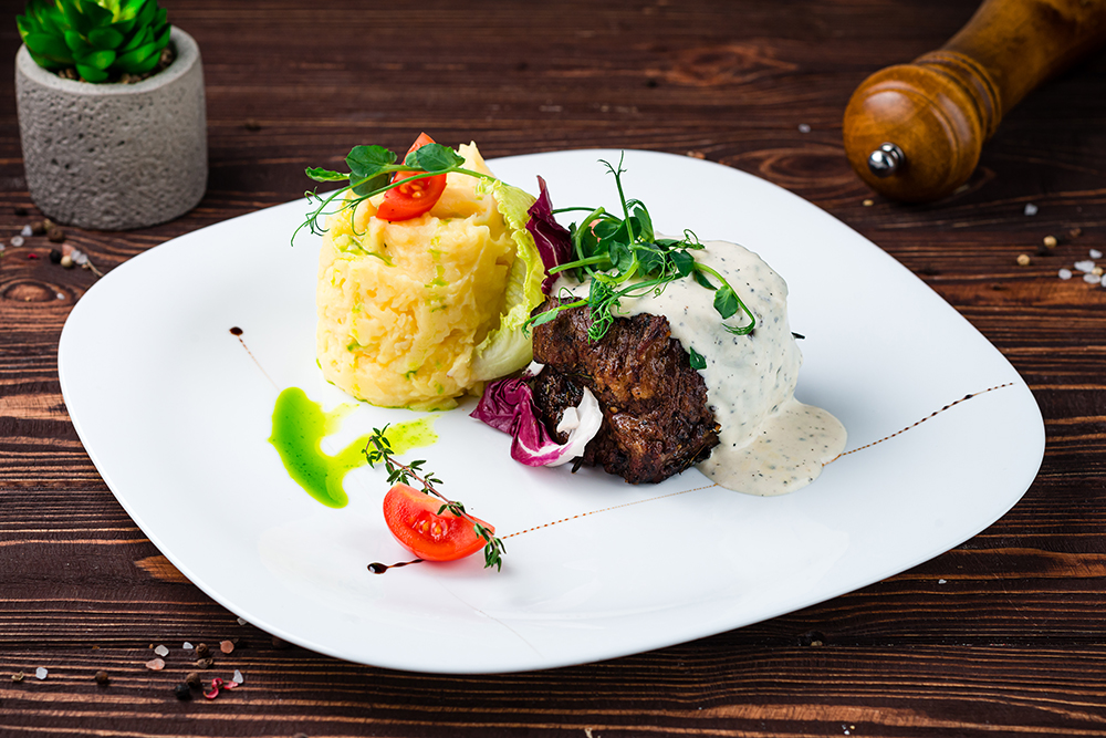 Стейк из говядины с перечным соусом 180/150/50/37