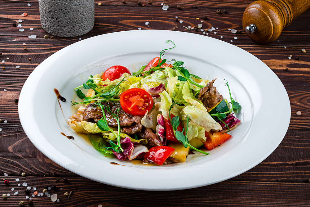 Салат с ростбифом и вялеными томатами с имбирной заправкой 240/2